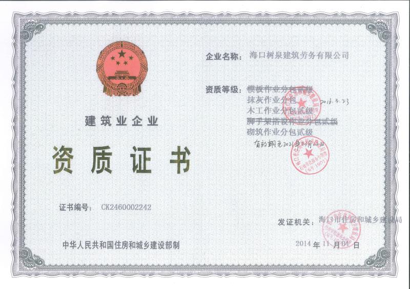 ??跇淙ㄖ趧沼邢薰境闪⒂?011年,公司位于???,其前身是一家專業(yè)建筑施工隊,自2004年即開始在海南從事建筑勞務施工。自成立至今,公司已經(jīng)擁有一支科學管理、質量過硬、能打硬仗,搶工期的專業(yè)隊伍。能獨立承擔大中型工業(yè)與民用建筑 、室內(nèi)外裝修、各類機電設備安裝工程。代表工程有??跒I海華庭、三亞時代海岸T01/02/04/05棟高層、合肥東?;▓@二期、陵水富力灣B區(qū)高層、三亞金中海(酒店)、瓊海大印經(jīng)典花園、??诃h(huán)球海景大酒店(四星級酒店,在建中)、陵水珍珠大廈(五星酒店)、海口萬達廣場、美蘭機場二期。